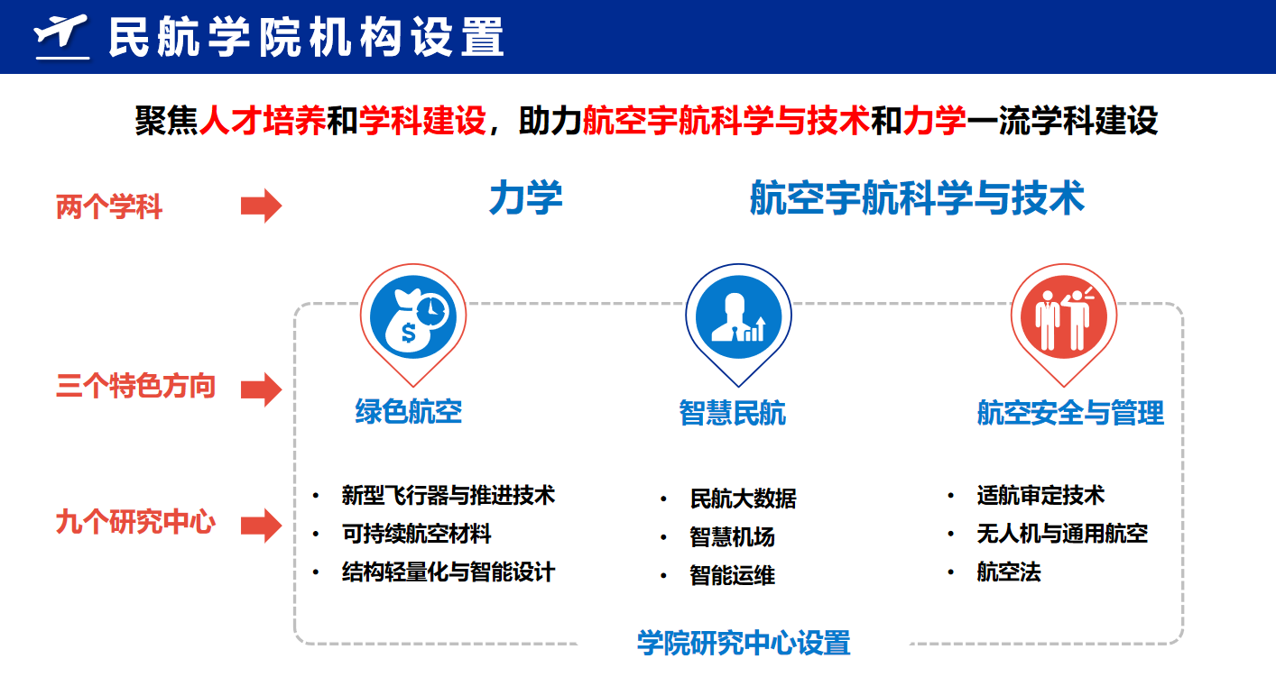 英国威廉希尔英文官网聚焦人才培养和团队建设,与研究院一体化运行,以绿色航空、智慧民航、航空安全与管理三大特色方向为引领,着重打造九大研究中心,助力航空宇航科学与技术和力学团队建设。民航研究院聚焦民航行业需求,与公司一体化运行,搭建衔接学科、科研与民航产业的产学研平台。