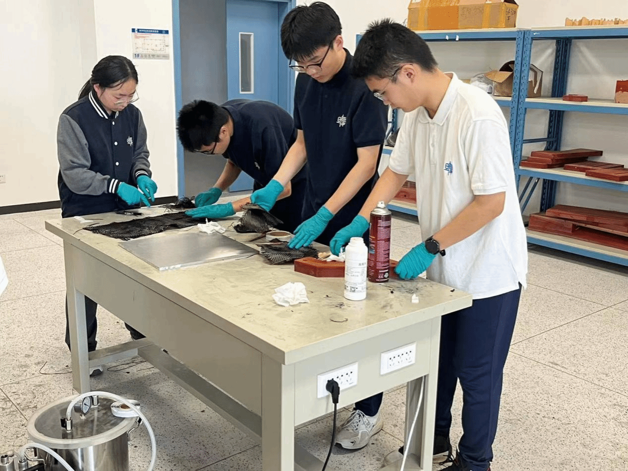 秦阳老师的《碳纤维复合材料平板的真空灌注制作》实验课,让同学们了解复合材料的发展历史以及在航空中的重要作用。同学们动手实践,用真空灌注的制备工艺,亲自制作一块平板,加深了对碳纤维复合材料更直观的认识。
