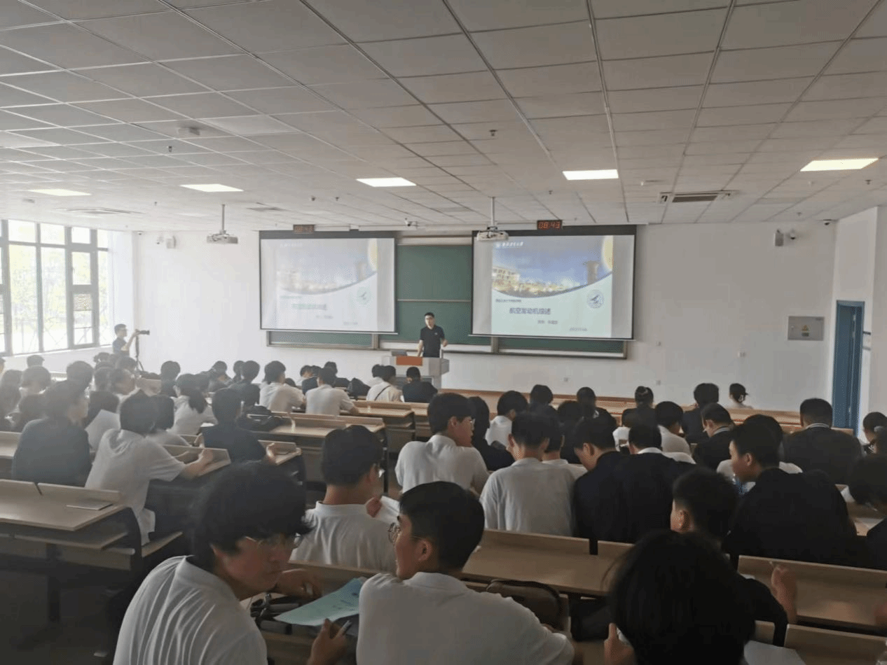 张猛创老师的《航空发动机浅谈》专题讲座,讲述了航空发动机发展历程,带领大家认识各个时期、不同类型的发动机,点燃了同学们航空报国的志向。