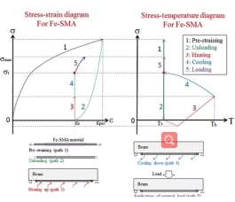 接着,Ghafoori博士介绍了Empa最新研发的一种具有高预应力能力的新型铁基形状记忆合金(Fe-SMA)。 由于其恢复应力较高,该合金的主要可用于金属结构疲劳裂纹修复和土木结构的预应力强化。实验证明Fe-SMA具有相当大的恢复应力和优越的抗疲劳性能。