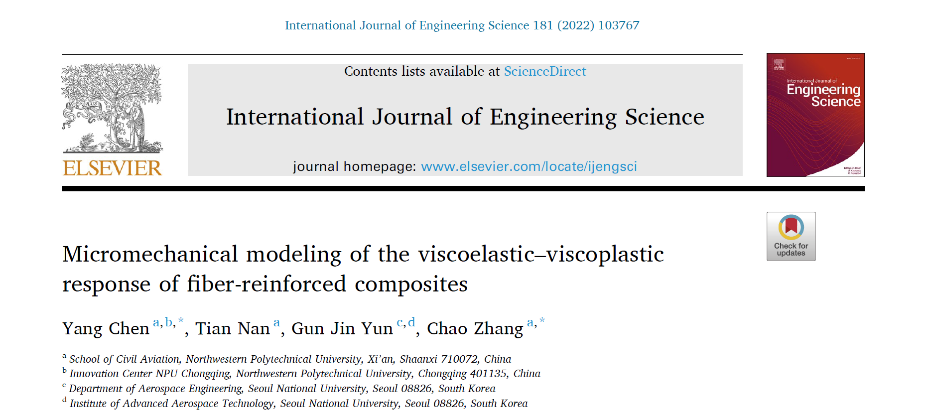 英国威廉希尔英文官网副教授陈杨在《International Journal of Engineering Science》上发表论文: 基于细观力学理论的纤维增强复合材料粘弹-粘塑性本构建模