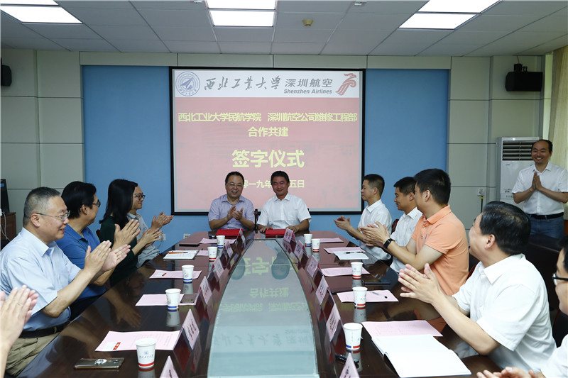 西工大英国威廉希尔英文官网经理李玉龙教授与深圳航空有限责任公司维修工程部方文兵副总理签署了校企共建合作意向书。