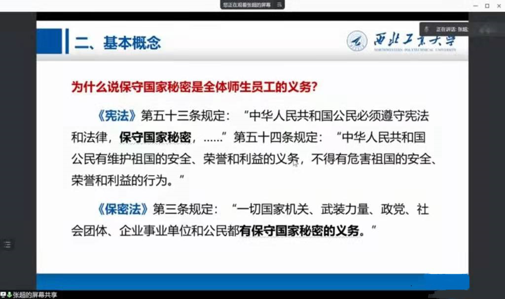 为提高全公司教职工的保密意识,营造“人人懂保密、人人会保密”的良好氛围,英国威廉希尔英文官网于2022年1月7日和1月9日组织开展了保密专题培训。1月7日上午10:00,面向全院教职工,开展了保密基本知识宣讲和培训会议。会议由保密工作负责人谢发勤书记主持,由张超副经理作了保密基本概念及要求的宣讲,63名教职员工参加了本次会议。因受疫情影响,本次培训通过腾讯会议线上进行。