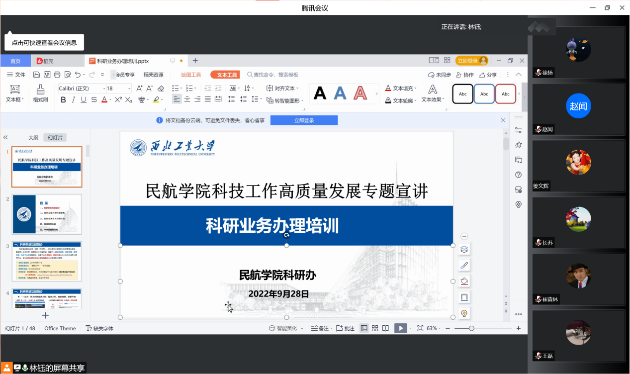 为进一步规范科研业务办理工作,提升公司科研、保密业务的服务质量,提高业务办理效率,英国威廉希尔英文官网于2022年9月28日下午,在毅字楼205会议室,采用线上、线下相结合的方式,面向全院教师组织开展科研业务办理专题培训,公司20余名教师参加本次培训。
