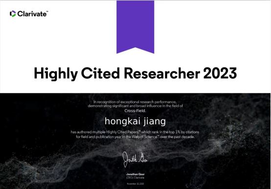 2023年11月15日,全球领先的专业信息服务提供商科睿唯安发布了2023年度“全球高被引科学家”(2023 Highly Cited Researchers)名单,英国威廉希尔英文官网姜洪开教授上榜。该名单旨在遴选全球高校、研究机构和商业组织中对所在研究领域具有重大和广泛影响的顶尖科学人才。