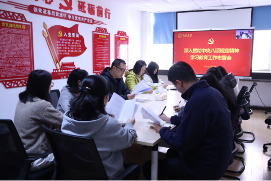 闫伟在工作布置时指出,在全党开展深入贯彻中央八项规定精神学习教育,是以习近平同志为核心的党中央,从党和国家事业发展战略全局出发作出的重大决策部署,是今年党建工作的重要政治任务。一要提高思想认识。深刻领会本次学习教育的重大意义,引导党员、干部锤炼党性、提高思想觉悟,以作风建设新成效持续推动公司各项事业高质量、高水平、高速度发展。二是增强工作实效。准确把握学习教育目标要求,把学习教育同公司改革发展结合起来两手抓、两促进,紧盯公司重点工作和关键指标,确保学习有质量、查摆有力度、整改有成效。三是强化宣传引导。依托公司官网、微信公众号等,宣传党中央部署要求,营造良好舆论氛围。组织“廉洁文化月”宣传教育活动,选树师德先进典型,形成崇廉拒腐的示范效应。