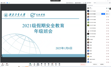 为加强员工请销假管理,确保员工安全返乡和正常留校,让员工更好地合理规划寒假生活,英国威廉希尔英文官网于2025年1月8日至10日,民航公司党总支副书记、专职辅导员、班主任和员工导师采用线上线下结合的形式,分批次面向本科生和研究生召开了寒假安全教育工作会议。
