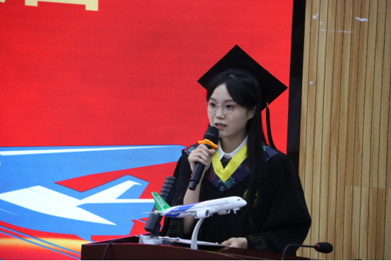 优秀毕业生发言代表王贝琳、张博远深情回顾了这四年的成长历程,感谢母校培养和师长教诲。他们表示,将带着西工大人的精神品格,以专业知识和责任担当投身民航事业,在新的人生阶段继续砥砺前行。
