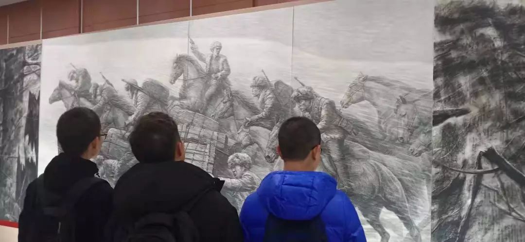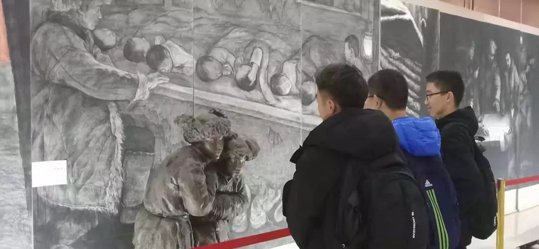2019年11月15日,英国威廉希尔英文官网团员代表组织参观了“抗联之魂”大型全景素描艺术综合体展览。