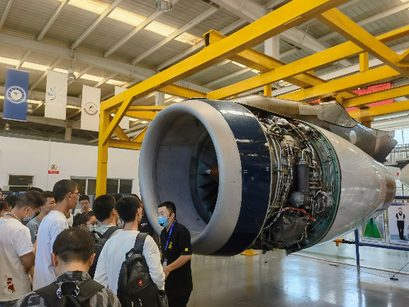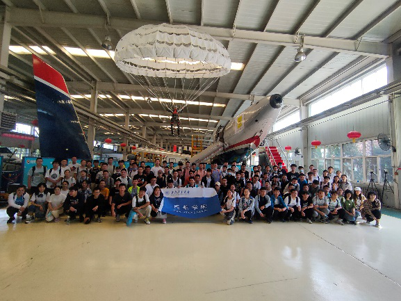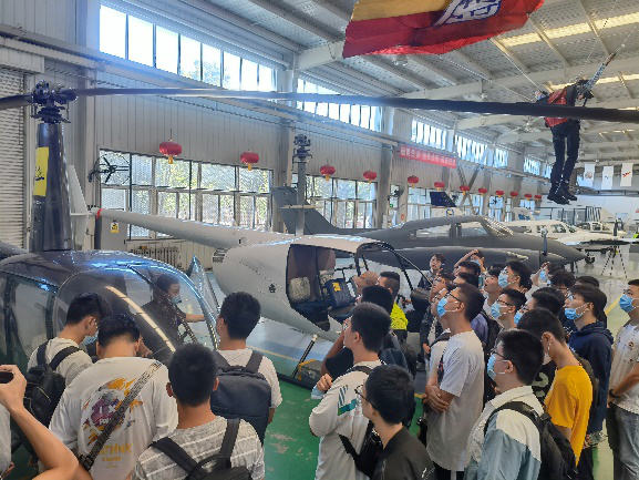 在上午的体验过程中,同学们在讲解员的带领下,首先进行了空客A320客机的绕机检查——这是了解飞机整体状态、保障飞行安全的第一步。通过这个项目的学习,同学们不仅更加详细和系统地认识了民用飞机的构造,细致的检查要求也让同学们深深体会到了民航人严谨科学的专业精神和敬业奉献的职业操守。随后,同学们与多款现役的固定翼飞机、直升机、自转旋翼机以及飞机发动机进行了“零距离”接触,了解飞行器种类、结构,学习飞行器制造相关知识。最后,同学们不仅集体学习了航空应急撤离知识,还通过撤离安全滑梯这个课目的应急演练,现场检验了学习效果。