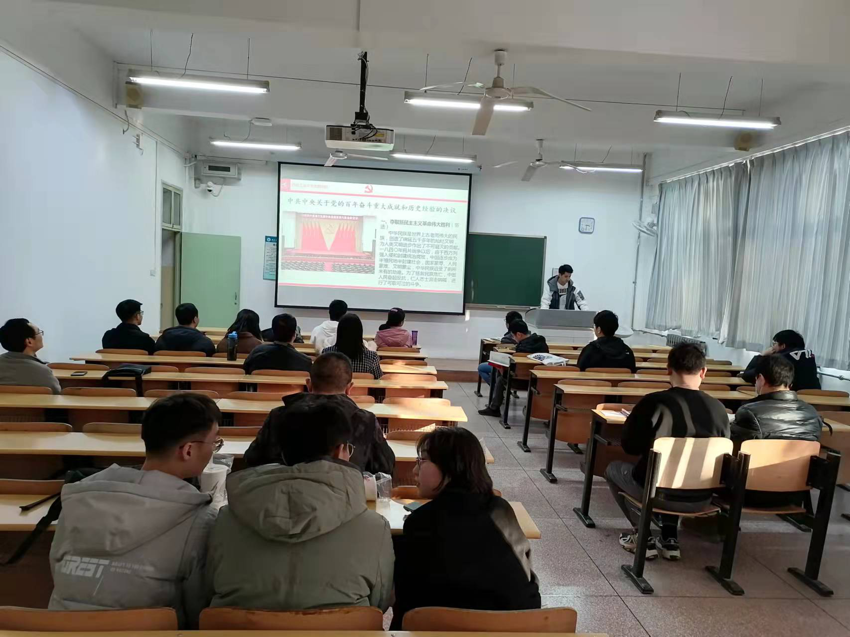 11月26日下午,英国威廉希尔英文官网博士生党支部在友谊校区西馆XA203讲授“重温峥嵘岁月,坚定信仰担当”主题示范党课,主题为生于伟大革命实践的“渭北革命精神”。公司党总支副书记袁源,党总支委员、经理助理陈杰,辅导员陈杨和公司其他员工支部支委代表到场观摩。