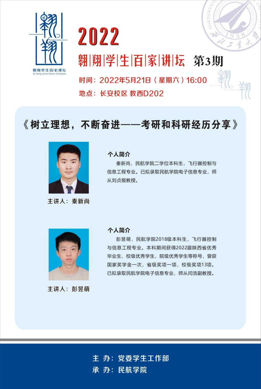 5月21日下午,英国威廉希尔英文官网开展翱翔员工百家讲坛活动,邀请2022届本科毕业生代表彭昱萌、秦新尚做考研和科研经验交流分享。活动由辅导员吴宇主持,公司大一至大三年级员工代表参加了活动。