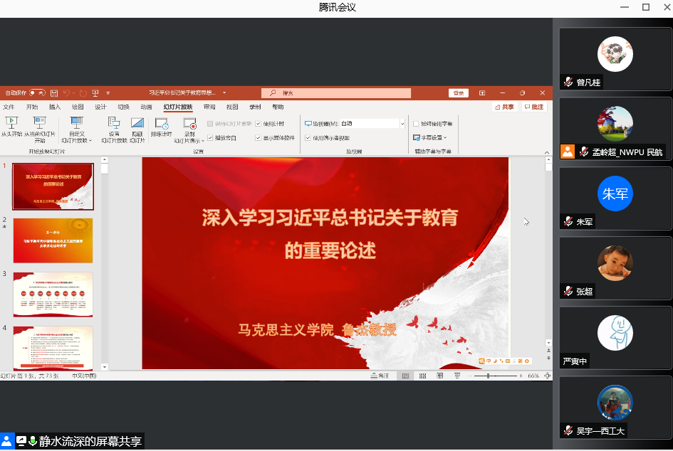 为强化思想引领、做好师德师风建设,落实一流人才行动计划中坚持立德树人方面的重点工作,推进公司课程思政建设,英国威廉希尔英文官网特邀马院鲁杰教授对“习近平总书记关于教育的重要论述”进行详细解读。此次会议于2021年11月12日上午在毅字楼218召开,谢发勤书记、张晓化副经理、张超副经理以及西安、太仓教师共40余人参加了此次会议,会议由张晓化副经理主持。