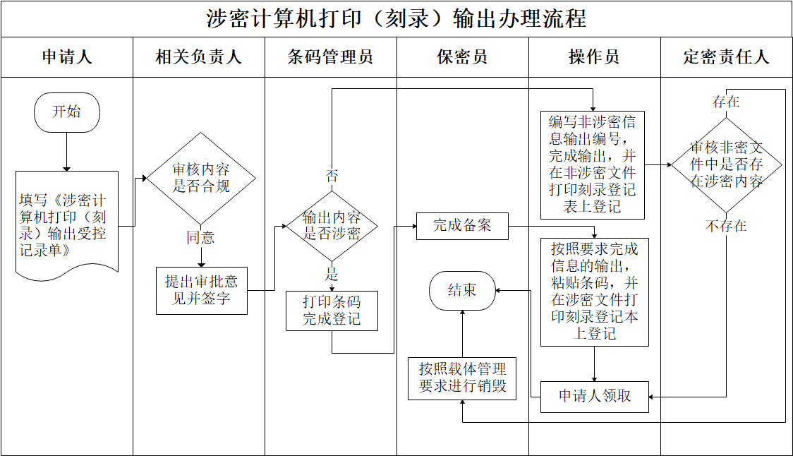 信息化建设与管理处 → 保密业务 → 办事流程 → 涉密计算机打印(刻录)输出办理流程